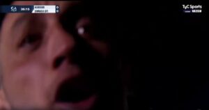 Mientras se jugaba el primer tiempo entre Gimnasia LP y Acassuso en Caseros, un espectador se la arrebató al camarógrafo y apareció en vivo por