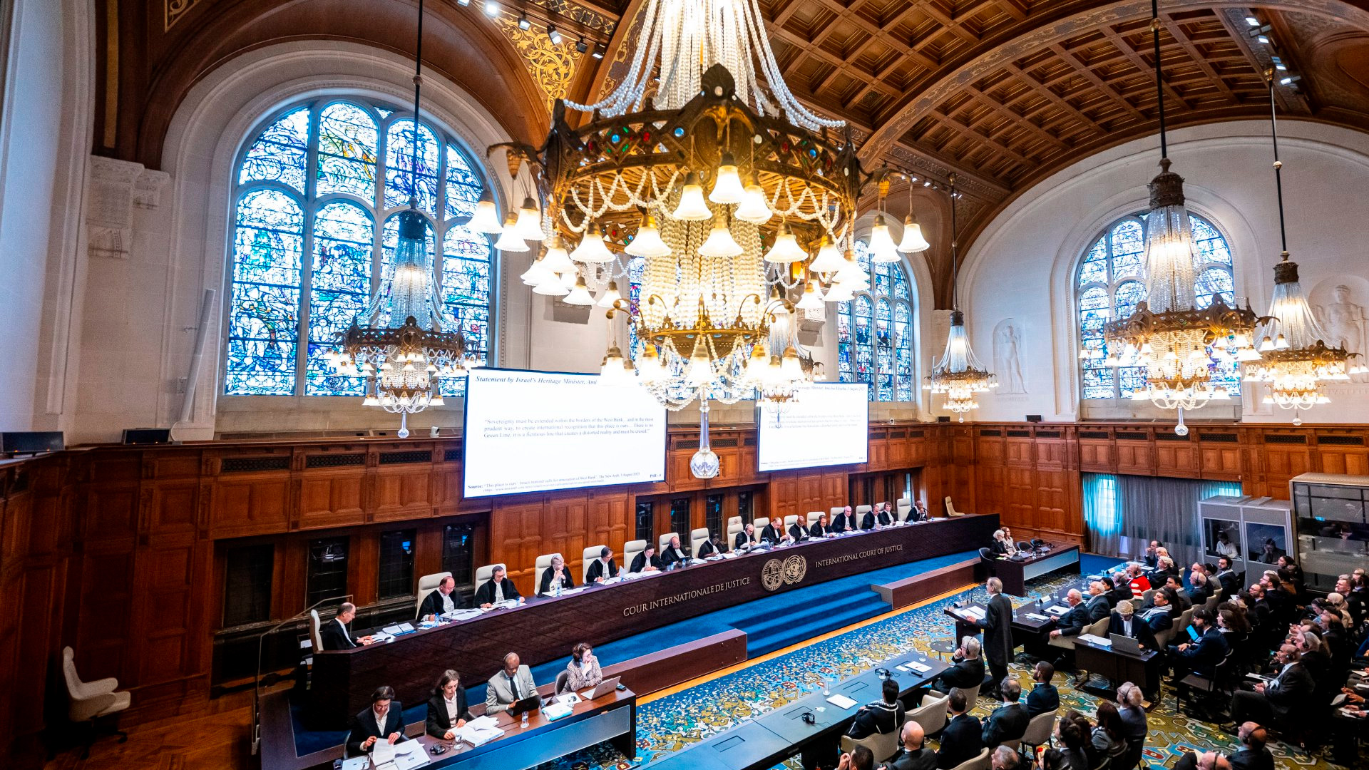 «Todo movimiento hacia la retirada de Israel de Cisjordania y de Gaza requiere que se tengan en cuenta las necesidades de seguridad de Israel» dijo Richard Visek, asesor jurídico del Departamento de Estado de Estados Unidos, en la sede del organismo en La Haya.