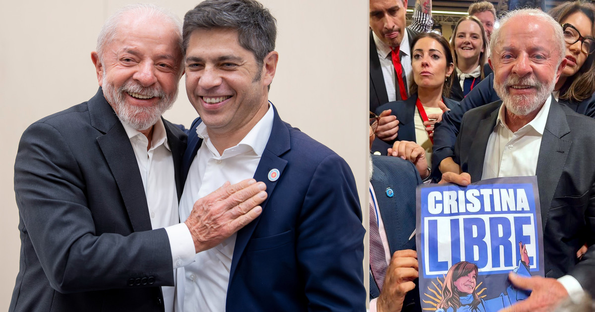 - La comitiva cristinista logró la imagen de Lula con un afiche pidiendo la libertad de la expresidenta.